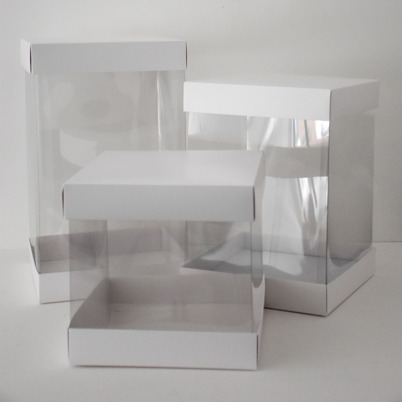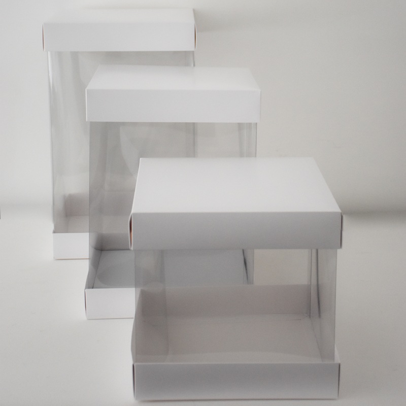 10″ Square Cake Box with choice of heights Tall Clear Sleeve suitable for many types of Cakes & Tall Cakes.